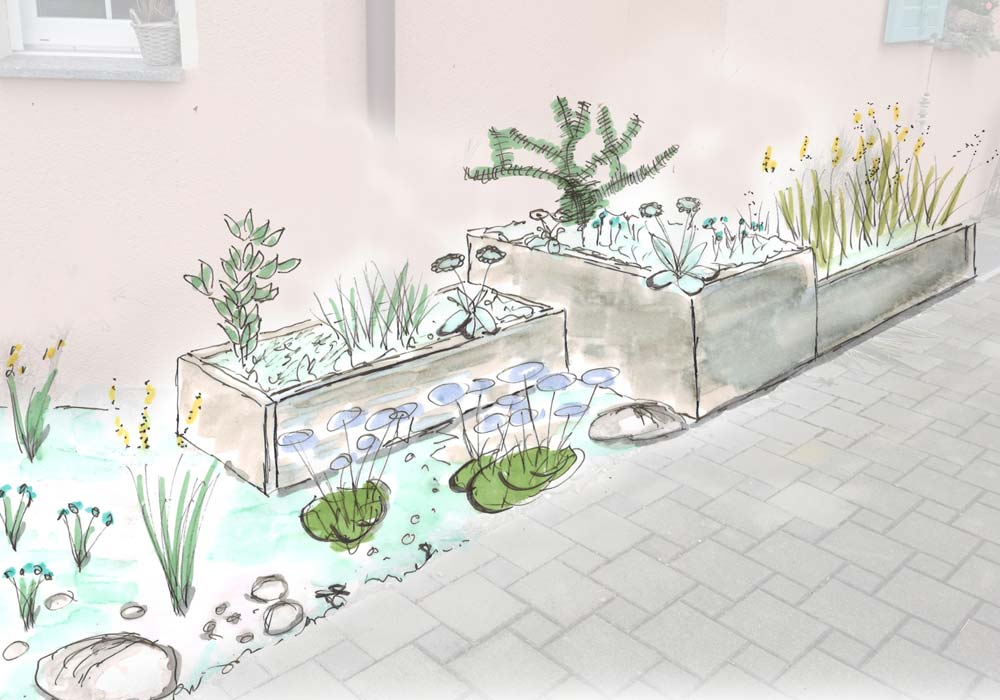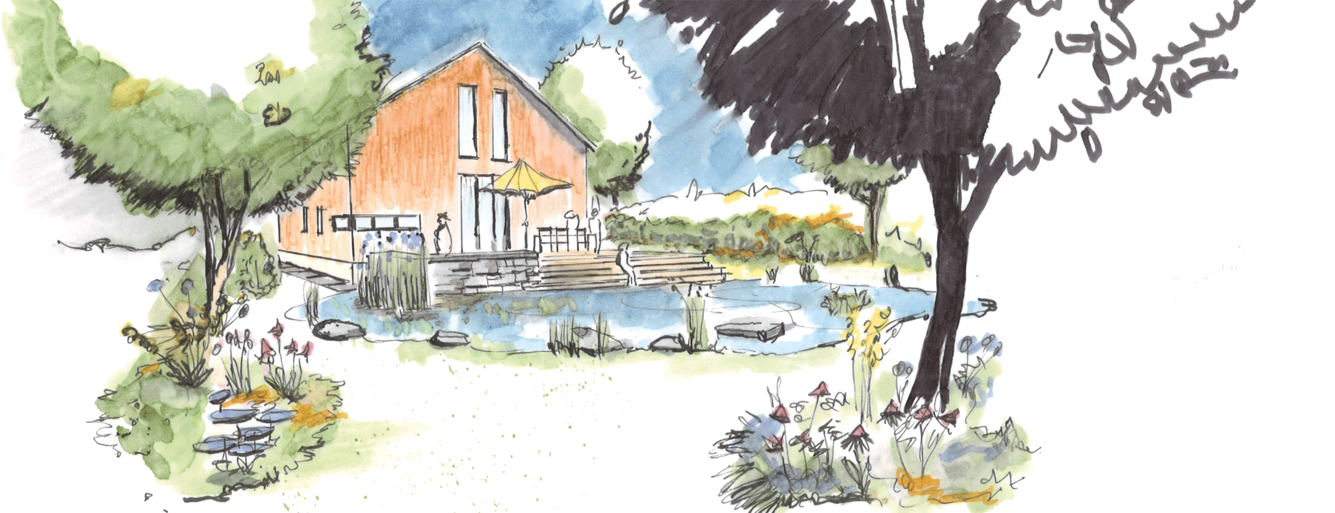 Zur Planung gehören auch unsere Empfehlungen zur Wahl der Materialien und die harmonisch durchdachte und auf den Standort ideal angepasste Pflanzenwahl. Damit Sie viele Jahre Freude haben an Ihrem Kleinod. Wir kennen die gartenrelevanten Normen und Gesetze. Auf Wunsch übernehmen wir auch gleich die Baueingabe.